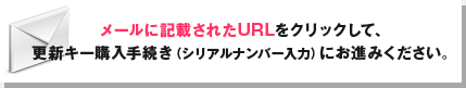 | ご購入が完了すると、最初に入力されたメールアドレス宛に更新キーのご購入完了をお知らせするメールが届きます。 |