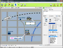 ショップカードやチラシなど、店舗案内図を挿入したい時に便利な機能です。作成中の画面上で地図作成ソフト「地図スタジオLE」が起動するため、スムーズに地図を作成&挿入することができます。 |