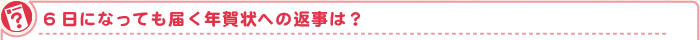 返事がなかった場合は、先方は年賀状でのご挨拶のやりとりを望んでいないと判断して、次の年は出さなくてもよいでしょう。ただし、出したかったのに時機を逸してしまったなど、次の年先方から届いた場合は、速やかに返礼を出しましょう。 |