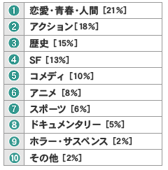 | アンケート内容:あなたが今まで見た中で、最もお気に入りの映画を教えてください。 |